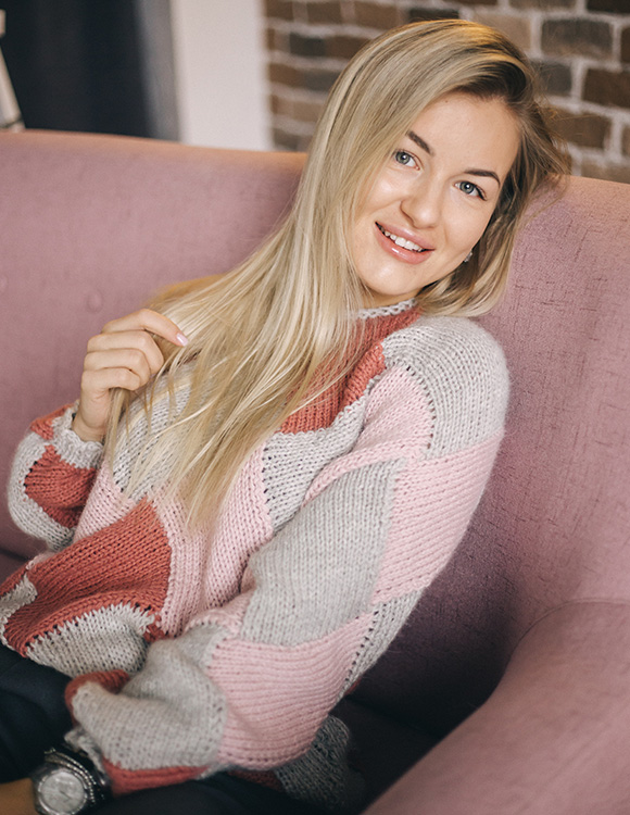 Вязаный джемпер женский в технике энтерлак — фото