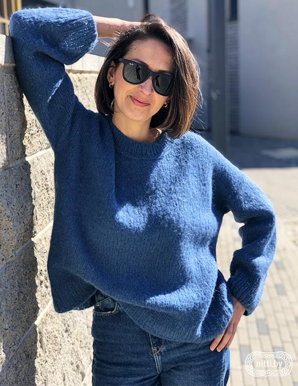 CLOUD связан лицевой гладью по кругу до пройм и кокетка поворотными рядами. Горловина - резинкой 1х1 с ложной кеттлёвкой, манжеты и низ – резинкой 1х1. Спущенный рукав. Оригинальная пряжа: Drops Brushed Alpaca Silk в два сложения. Расход – 10 мотков (42-44 р-р).