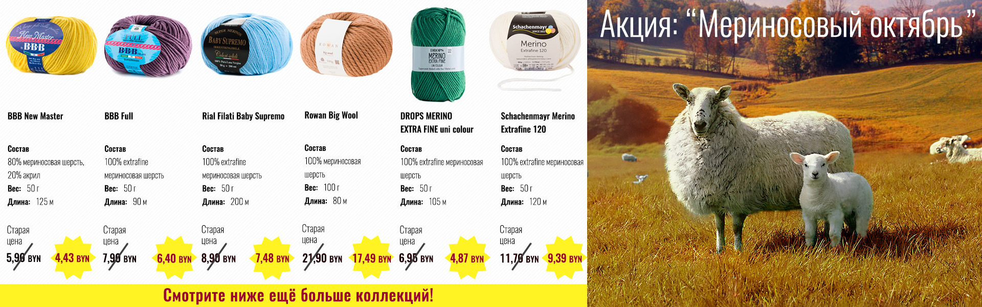 Весь октябрь у вас есть возможность купить пряжу с содержанием мериноса со скидкой до -30%!⠀